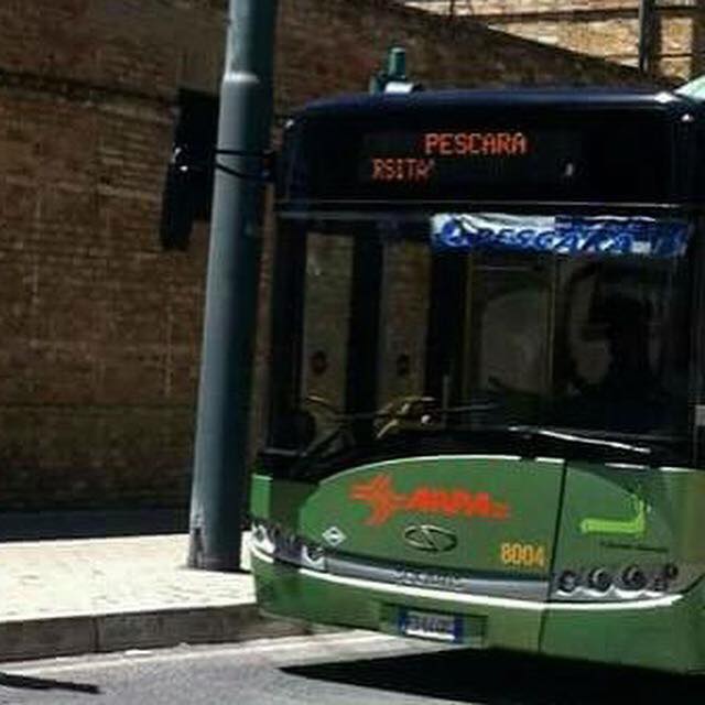 Le bottiglie, riempite di benzina, si legge nell’articolo di Gianluca Lettieri su “Il Messaggero“, sono state lanciate nella notte, tra giovedì e venerdì, contro gli autobus della Tua (ex Arpa) parcheggiati nel deposito all’aperto di via dei Peligni a Chieti. Non è escluso, secondo le prime indagini, che il raid sia legato a un episodio avvenuto qualche giorno fa, quando un autobus della Tua, da piazza San Giustino e diretto a Pescara, è stato fotografato, in zona piazza Garibaldi, con una sciarpa del Pescara calcio in bella vista. La foto (che vedete sopra) è diventata “virale” sui social, in particolare su Facebook, innescando diverse polemiche per il gesto dell’autista, ritenuto provocatorio da decine di utenti. Sul posto dell’incendio, oltre a pezzi delle bottiglie esplose, sarebbero stati trovati anche brandelli di una bandiera del Pescara. Le indagini seguirebbero la pista degli ambienti legati alla tifoseria del Chieti calcio. Un blitz che assumerebbe i contorni di una specie di vendetta. Annerite le fiancate di due pullman con le fiamme che si sono esaurite autonomamente. Il fatto si è verificato, probabilmente, tra l’una e le 4. La guardia giurata che è incaricata di controllare i deposito, non si è accorta di nulla. Un dipendente della Tua, intorno alle 6, poco prima di prendere servizio, ha notato i pezzi di due bottiglie di vetro, macchie scure sull’asfalto e i mezzi danneggiati e ha lanciato l’allarme.