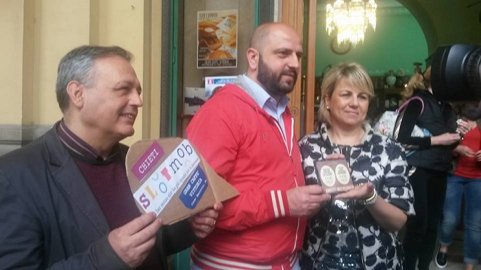 La campagna Slotmob è nata a Luglio 2013, promossa da vari esponenti della Società Civile, per combattere il problema del gioco d’azzardo legalizzato che sta dilagando in Italia. In oltre 40 piazze d’Italia, oggi, e anche in Abruzzo, per lanciare il Manifesto di democrazia economica e mandare una lettera al presidente Mattarella come garante della Costituzione per dire Stop alla dipendenza dello Stato dall’azzardo “incentivato per legge, per ridiscutere l’affidamento del settore azzardo alle aziende che fanno profitto su una piaga sociale”. Il Movimento Slot Mob, con oltre 120 eventi di strada cresciuti spontaneamente in tutta Italia con migliaia di persone coinvolte negli ultimi due anni, promuove la ricerca di una democrazia economica e di giustizia sociale che si esercita “votando con il portafoglio” e cioè premiando pubblicamente i titolari dei bar che non accettano di vendere i prodotti dell’azzardo (Slot, Gratta e Vinci, lotterie istantanee, ecc…).