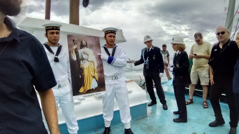 Pescara: si è ripetuta anche oggi, in mare, la processione di Sant’Andrea ma la statua non c’è, causa maltempo, sulla barca solo l’immagine. Guarda il video.