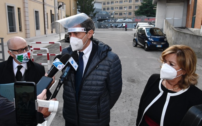 Sopralluogo del presidente della Regione Abruzzo Marco Marsilio e dell’assessore Nicoletta Verì al Covid hospital di Pescara, il governatore ha chiarito che l’intera palazzina rossa sarà dedicata interamente ai pazienti affetti da coronavirus. La struttura sarà potenziata. Implementati i posti letto.