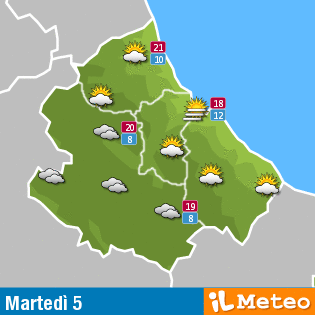Previsioni meteo Abruzzo di martedì 5 aprile: nubi sparse, a tratti cielo coperto, nebbie mattutine.