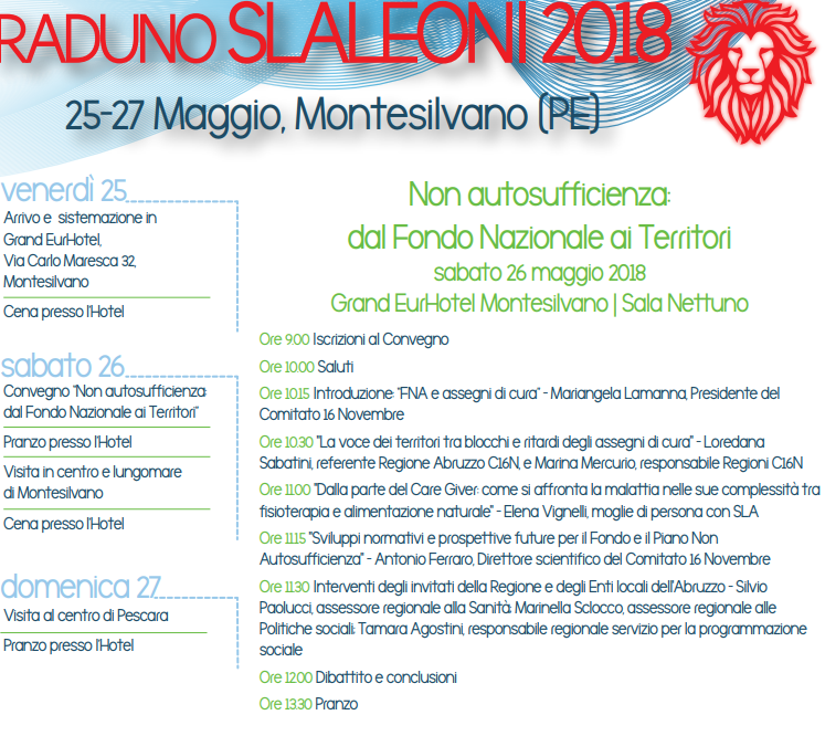 Quest’anno il X Raduno Slaleoni d’Italia dell’Associazione Comitato 16 Novembre Sla e patologie altamente invalidanti, si terrà a Montesilvano il prossimo 26 maggio.