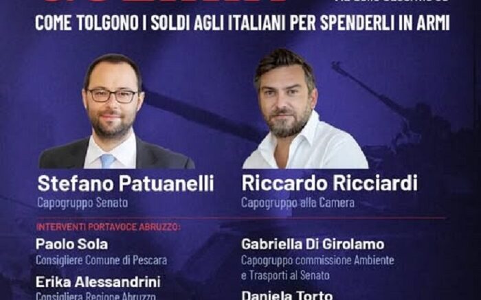 “Con Riccardo Ricciardi, Stefano Patuanelli, i portavoce abruzzesi e il candidato sindaco Carlo Costantini porteremo una scelta netta: togliere risorse alla guerra e investirle su persone e territori”.