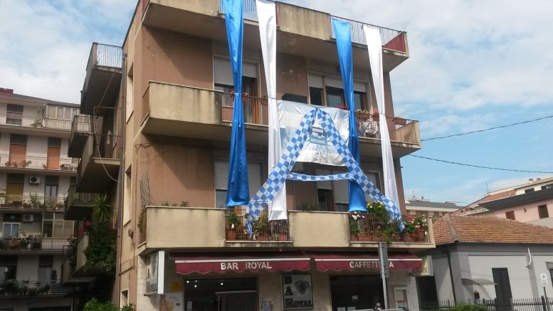 Non solo le bandiere, le maglie, le bancarelle con i gadget e i grandi schermo allestiti in piazza e in altri punti della città, per tifare Pescara ci si prepara in lungo e in largo, tanto che oltre alle sciarpe e agli stendardi biancazzurri appesi a balconi e finestre, c’è chi per incitare la squadra “addobba” un palazzo intero. E’ Pescaramania e l’attesa cresce: in città non si parla d’altro, per le strade e nei locali. E chi non ne parla, lo fa per scaramanzia o “pescaramanzia”… Calcio di inizio alle 20.30 a Trapani, con la speranza che il “bottino” del risultato ottenuto all’andata possa far tornare il Delfino vincitore all’Adriatico. Se avete foto e immagini su come vi state preparando alla gara di questa sera, condividetele sulla nostra Pagina Facebook o inviatele alla nostra mail [email protected].