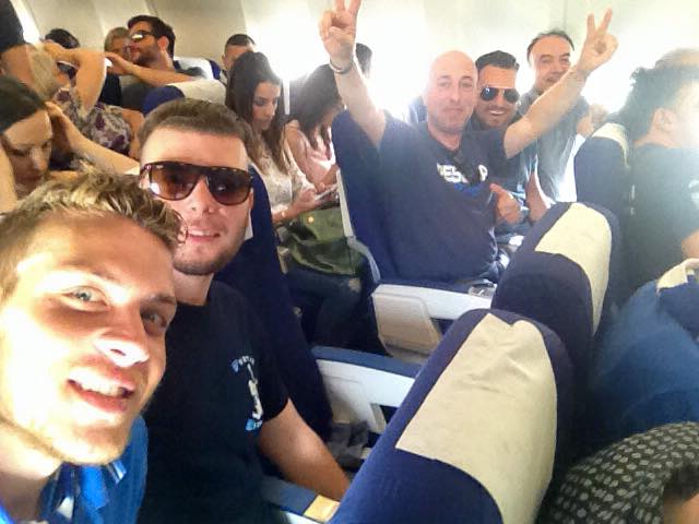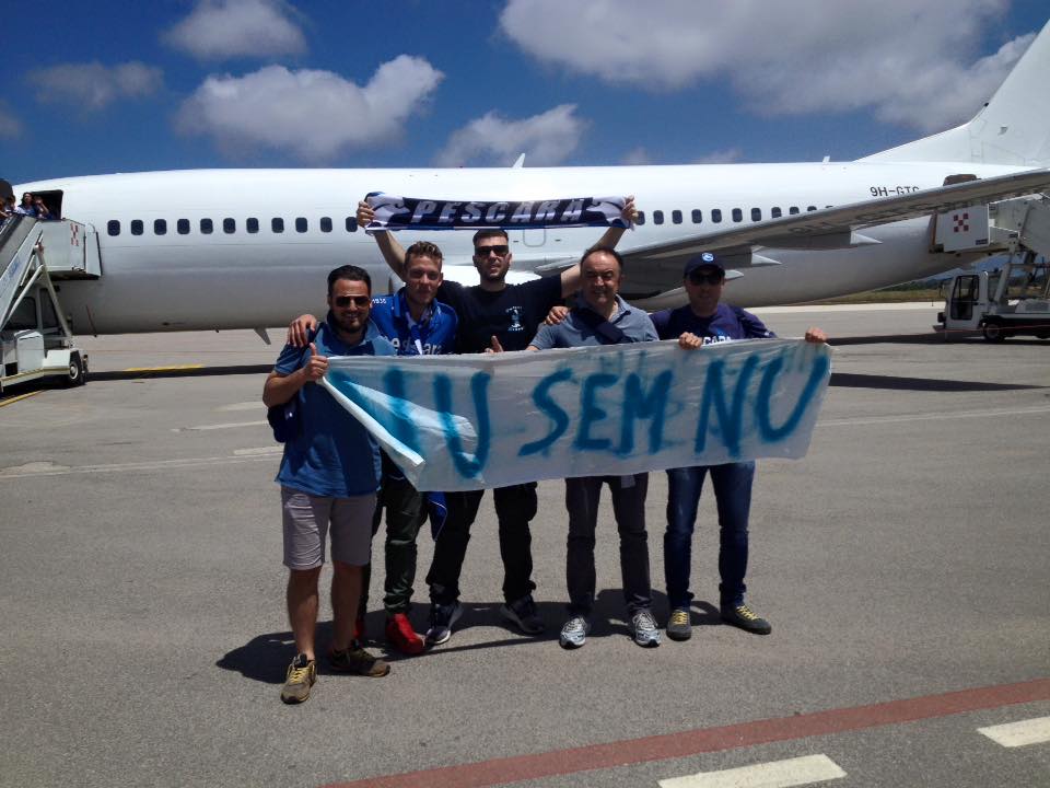 L’arrivo di alcuni tifosi biancazzurri in trasferta in Sicilia (foto sotto)