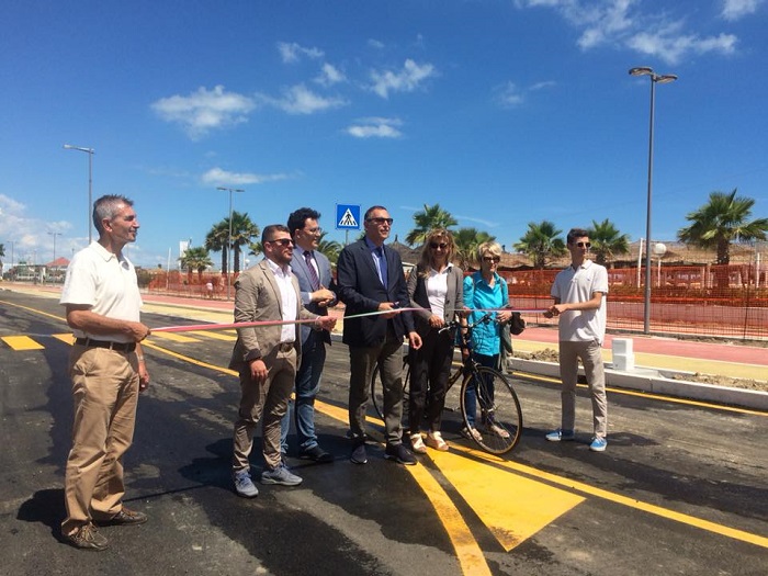 Stamane il taglio del nastro dell’opera aperta alla nuova viabilità per auto e bici con il sindaco Marco Alessandrini, il vicesindaco Antonio Blasioli, l’assessore Giacomo Cuzzi, presenti anche la ditta che sta effettuando l’intervento di riqualificazione, i tecnici comunali del Settore Lavori Pubblici, i consiglieri Tiziana Di Giampietro, Stefano Casciano, Emilio Longhi e la cittadinanza che ha inaugurato il transito sul nuovo tratto di pista ciclabile.