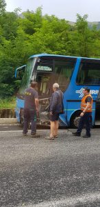 Sembra che l’autobus extraurbano della Tua, ma recante ancora il marchio Arpa, stesse scendendo da Roccaraso e fosse diretto a Sulmona. L’impatto con il muretto è avvenuto intorno alle 15 di oggi, sabato 18 agosto, sulla ss 17, al curvone che si trova nei pressi di Pettorano sul Gizio. A causare la perdita di controllo del mezzo potrebbe essere stato l’asfalto reso viscido dalla pioggia. L’autista e i sei passeggeri, tutti incolumi o con lievi contusioni, sono stati comunque portati in ospedale per essere sottoposti ai controlli del caso. L’incidente è avvenuto poco distante dall’abitato di Pettorano sul Gizio, il bus ha prima urtato un muro di contenimento, poi è uscito di strada. Sul posto sono intervenuti I Vigili del fuoco e la Polizia.