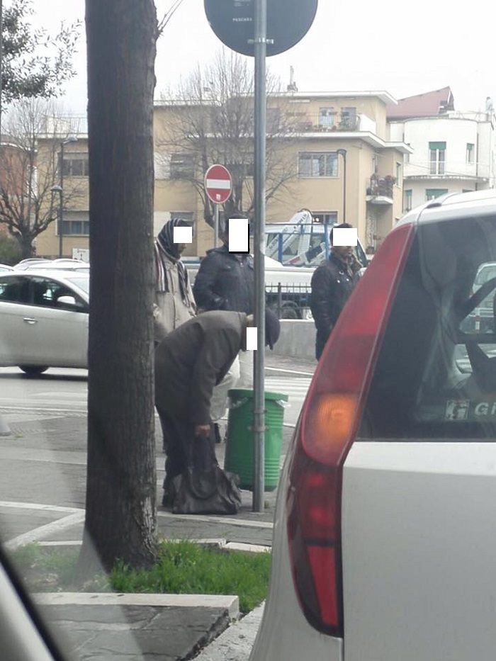 Pescara, il capogruppo di Forza Italia, Lorenzo Sospiri, scatta una foto: “Un anziano rovista tra i rifiuti mentre alcuni immigrati si fermano a guardare e vanno a spasso”.