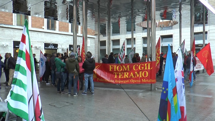 In occasione dello sciopero di due ore alla fine di ogni turno, previsto oggi, i metalmeccanici teramani hanno organizzato un presidio sotto la prefettura per rivendicare il diritto al lavoro ed alla sicurezza.