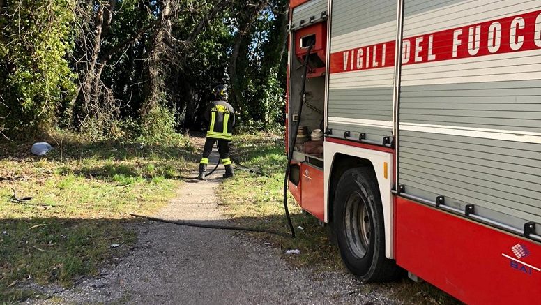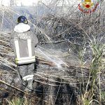 Vigili del fuoco in azione a Pescara per un incendio di sterpaglie sulla Tiburtina, nei pressi dell’Istituto Manthoné.