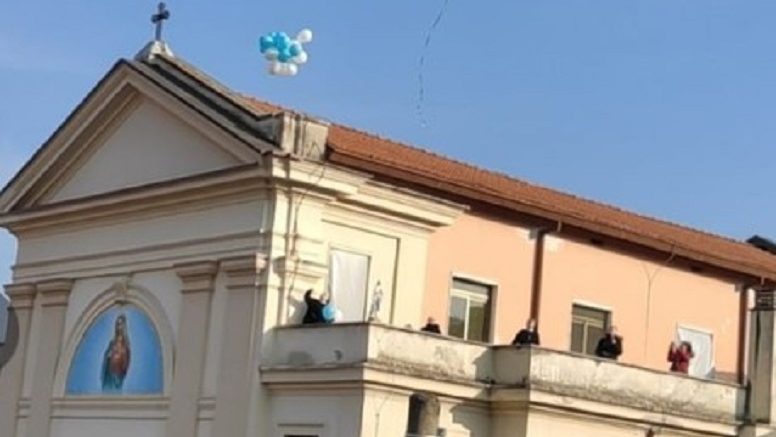 Coronavirus Avezzano: le suore del Sacro cuore di Gesù creano un gigantesco rosario di palloncini in città. “Un gesto di speranza”.