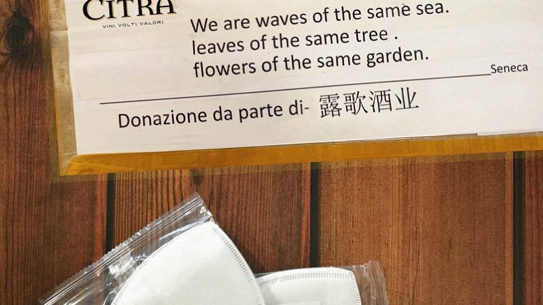 “Siamo onde dello stesso mare, foglie dello stesso albero e fiori dello stesso giardino” sono le parole di Socrate che accompagnano il dono di 1.000 mascherine inviate direttamente da un cliente cinese al gruppo Codice Citra, la principale realtà vitivinicola abruzzese.