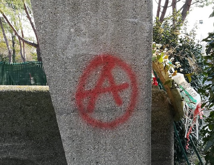e la condanna anche per le scritte anarchiche sul monumento ai caduti.