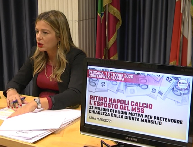 Ritiro Napoli Calcio, esposto del Movimento 5 Stelle. Il Capogruppo regionale del Movimento Pentastellato, Sara Marcozzi: “Tanti dubbi su un’operazione da oltre 12 milioni di euro di soldi pubblici sottratti alle imprese abruzzesi. La Giunta Marsilio fornisca i chiarimenti ai cittadini ed alle autorità”.