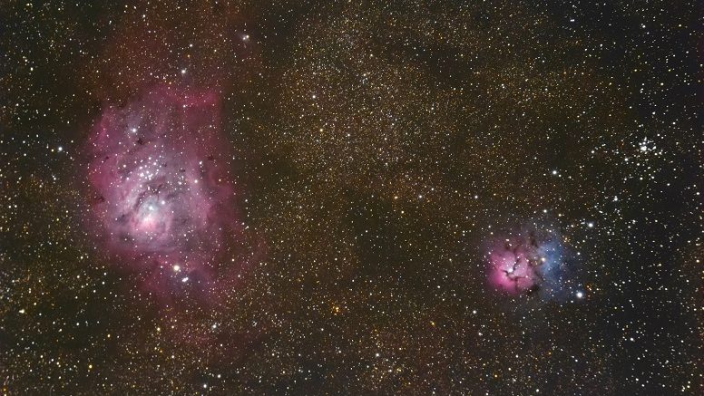 “La fotografia astronomica richiede un grande lavoro di preparazione e pazienza”, dichiara Antonio Ferretti. “Quella pubblicata su Sky and Telescope è risultato di una sequenza di 94 pose fotografiche, un totale di 37 ore distribuite in 17 notti. Il telescopio ha dovuto mantenere perfettamente inquadrate le due nebulose, acquisendo la loro luce con diversi filtri, per eliminare l’inquinamento luminoso e far emergere tutti i dettagli di Laguna e Trifida”.