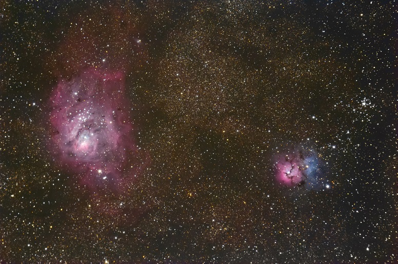 “La fotografia astronomica richiede un grande lavoro di preparazione e pazienza”, dichiara Antonio Ferretti. “Quella pubblicata su Sky and Telescope è risultato di una sequenza di 94 pose fotografiche, un totale di 37 ore distribuite in 17 notti. Il telescopio ha dovuto mantenere perfettamente inquadrate le due nebulose, acquisendo la loro luce con diversi filtri, per eliminare l’inquinamento luminoso e far emergere tutti i dettagli di Laguna e Trifida”.