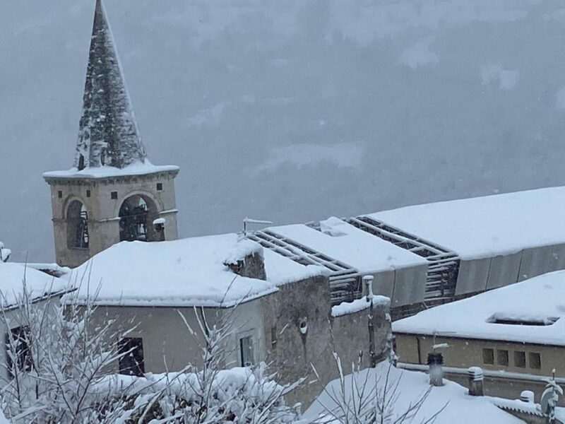 Come prevedibile e temuto, le intemperie di questi ultimi giorni stanno mettendo a durissima prova la tenuta della copertura provvisoria del tetto della chiesa di Santa Maria Maggiore a Caramanico Terme e, con essa, dell’intero edificio danneggiato dal crollo del tetto, avvenuto nel gennaio 2017, a causa delle eccezionali nevicate e dei concomitanti eventi sismici.