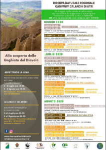 Torna il programma estivo della Riserva naturale regionale dei Calanchi di Atri – Oasi WWF, promosso in collaborazione con il Comune di Atri e l’Istituto abruzzese delle aree protette (IAAP). A partire da lunedì 15 giugno 2020 saranno numerose le attività proposte in rete con diverse associazioni locali, per scoprire e valorizzare le meravigliose “unghiate del diavolo” e il patrimonio di flora e fauna che in esse è custodito. Ogni attività è organizzata rispettando le disposizioni anti Covid 19: piccoli gruppi per garantire il distanziamento interpersonale, uso obbligatorio di mascherina, presenza di gel disinfettanti per le mani.
