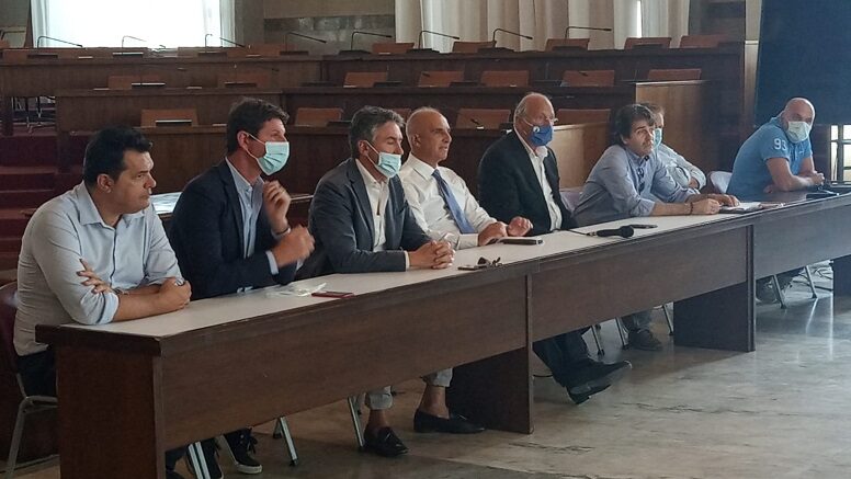 Alla conferenza stampa di presentazione del bando di gara per la sistemazione delle aree di risulta in Comune c’erano il sindaco Carlo Masci, il presidente del Consiglio comunale Marcello Antonelli e i consiglieri della maggioranza.