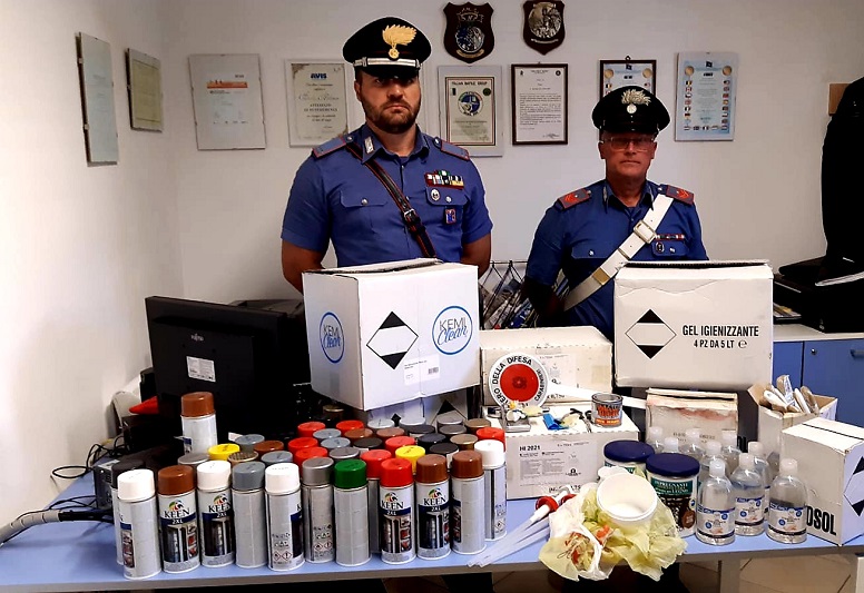 La perquisizione è stata estesa al domicilio del 43enne di Atri, dove i Carabinieri hanno scoperto altri 14 grammi dello stesso stupefacente, un bilancino di precisione e materiale per il confezionamento delle dosi. Ma la sorpresa più grande è stato il rinvenimento di gel igienizzanti e altre sostanze sanitizzanti, per un valore complessivo di circa 5.000 euro, che l’uomo aveva rubato lo scorso giugno, presso l’azienda dove lavorava come operaio.