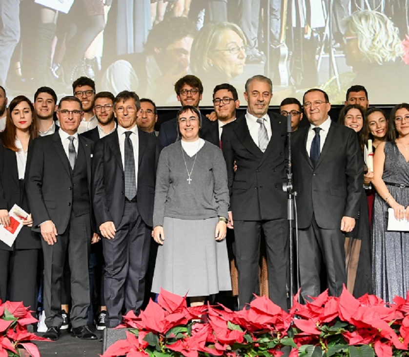 Alla tradizionale Cena del Socio della Banca di Credito Cooperativo di Castiglione Messer Raimondo e Pianella che si è svolta sabato sera, 21 dicembre 2019, al Pala Dean Martin, il Centro Congressi di Montesilvano, hanno partecipato oltre 2800, dei circa 5000 soci dell’istituto presieduto da Alfredo Savini. La serata è stata arricchita dalla presenza dell’economista, recentemente nominata consigliera di Papa Francesco, Suor Alessandra Smerilli, una delle più autorevoli sostenitrici dell’economia dal volto sociale e al servizio dell’uomo. Dopo un iniziale saluto ai presenti, Suor Alessandra, ha posto l’accento sull’importante ruolo delle BCC, istituti di credito che si fondano sui principi di mutualità e di solidarietà e che hanno un ruolo importantissimo sul territorio, lavorando a beneficio delle persone e sostenendo le imprese locali. Azioni che caratterizzano da sempre l’operato della BCC di Castiglione. Durante la serata sono state portate avanti iniziative sociali quali la consegna di 25 mila euro alla Caritas Diocesana di Teramo e di 25 mila euro a quella di Pescara per le attività del Banco Alimentare. Nel 2019, inoltre, sono stati stanziati 60mila euro per delle carte di credito solidali destinate a famiglie che vivono un momento di difficoltà segnalate da enti o associazioni caritatevoli e sono stati erogati circa 600 mila euro a favore di soci e realtà territoriali per attività culturali, sociali e ricreative. Anche quest’anno sono state consegnate ben 37 borse di studio a studenti meritevoli soci o figli di soci.