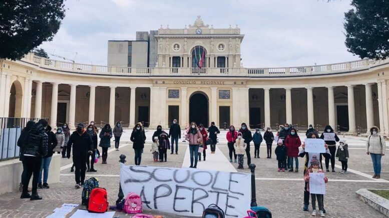 Anche L’Aquila ha risposto alla mobilitazione nazionale lanciata dalla rete “scuole in presenza” con una manifestazione pacifica, di domenica pomeriggio dinanzi all’Emiciclo, che si è svolta in contemporanea anche ad Avezzano e in altre città italiane.
