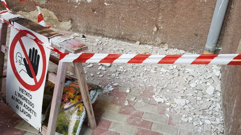 Non è la prima volta che succede, ma chi abita al civico 13 di via Passolanciano a Pescara certamente si augura che sia l’ultima. Calcinacci in caduta libera, staccatisi dal cornicione dell’edificio Ater in questione e schiantatisi a terra col pericolo di colpire ignari passanti.