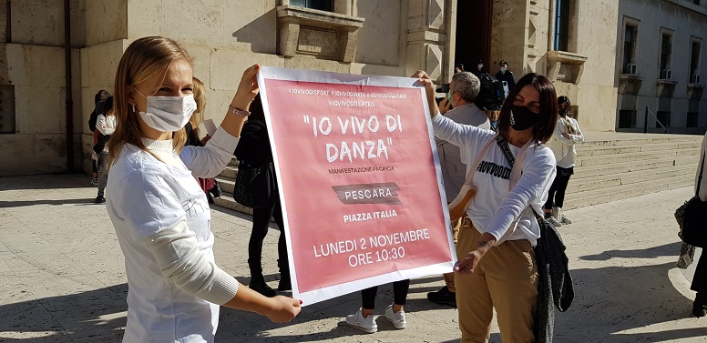 «È stata ignorata tutta la filiera: non soltanto noi negozianti, ma anche i rappresentanti e i produttori di stoffe e pelle che servono a confezionare articoli specializzati», ha spiegato Assunta Granata, referente della Anideb, associazione negozi italiani danza e ballo, presente alla manifestazione in piazza Italia a Pescara. «Oltretutto, non avendo un codice Ateco specifico, i nostri negozi rientrano nel settore dell’abbigliamento generico, perciò continueremo a restare aperti e non potremo beneficiare neppure dei ristori previsti per altre categorie, ma di fatto la nostra attività si è fermata con la chiusura delle scuole di danza.