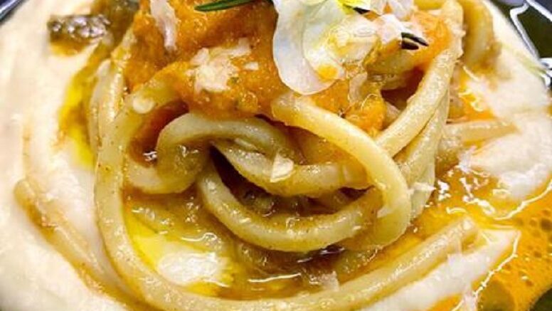 Alla 5^ settimana della cucina italiana a Lisbona la Rustichella d’Abruzzo celebra la tradizione a tavola con un chitarrone al baccalà, omaggiando Pellegrino Artusi.