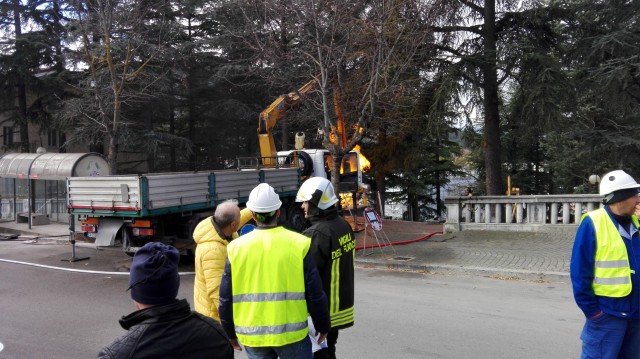 Per parecchio tempo le fiamme sono rimaste alte due metri facendo temere il peggio. Poteva davvero avere un epilogo drammatico infatti una fuga di gas le cui cause sono ancora in corso di accertamento, anche se da quanto emerso la perdita si sarebbe generata durante i lavori di installazione di un riduttore da media a bassa pressione, come ha spiegato un funzionario dei Vigili del fuoco dell’Aquila, l’ingegnere Eutizio Di Gennaro. Alcune persone raccontano di avere sentito un’esplosione da cui si sarebbero propagate delle fiamme molto alte.