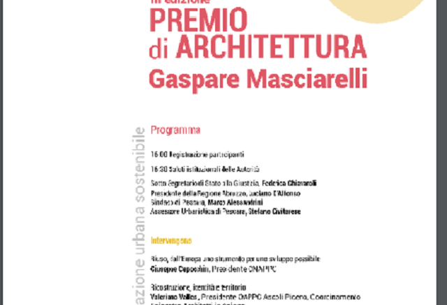 È dedicata ai temi del riuso e della ricostruzione, a Pescara, la 3° edizione del Premio di Architettura Gaspare Masciarelli 2016, promosso dall’Ordine degli Architetti.