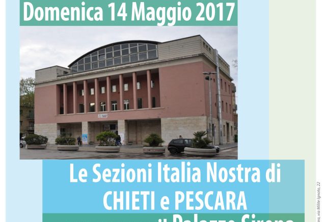 Le sezioni di Chieti e Pescara di Italia Nostra si mobilitano per la salvaguardia di Palazzo Sirena a Francavilla al Mare. Sit-in domenica mattina in occasione della prima Giornata nazionale dei Beni Culturali promossa da Italia Nostra.