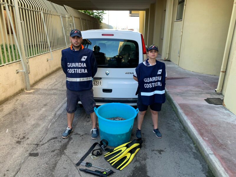 I pescatori, provenienti dalla provincia di Napoli, sono stati colti in flagrante mentre caricavano il bottino in auto, sul lungomare di Francavilla al Mare.