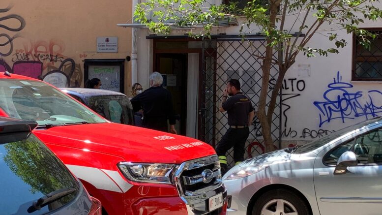La fotografia che pubblichiamo, scattata dalla via laterale, mostra l’ingresso della Caritas, dietro la cattedrale di San Cetteo. Il ristorante interessato, Il ruvido, si trova invece su via Conte di Ruvo. Dalla cappa del locale cucina si è sprigionata una colonna di fumo nero che ha motivato la richiesta di aiuto. Immediato l’intervento dei Vigili del fuoco che, in pochi minuti, hanno individuato il problema legato alla canna fumaria della cappa.
