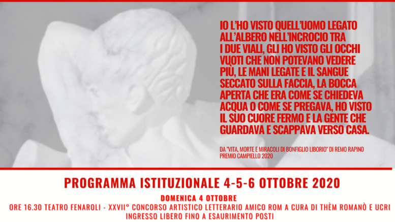L’amministrazione comunale della Città di Lanciano, Medaglia d’oro al valore militare per la Resistenza, e l’ANPI Lanciano, sezione Trentino La Barba, dal 4 al 6 ottobre organizzano diversi eventi, tutti nel rispetto delle norme anticontagio da covid19, quindi con l’uso obbligatorio della mascherina e il rispetto del distanziamento fisico di almeno 1 metro.