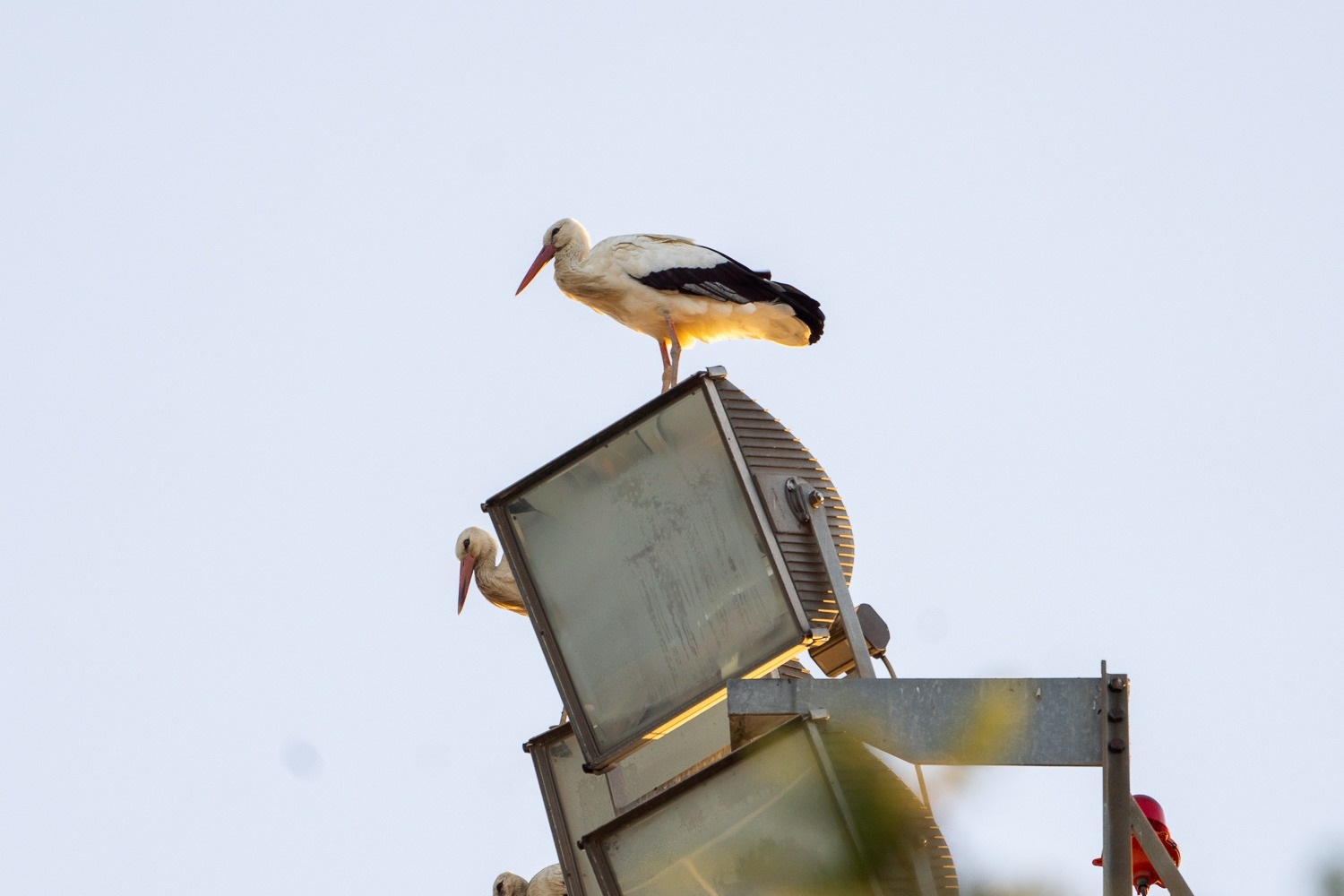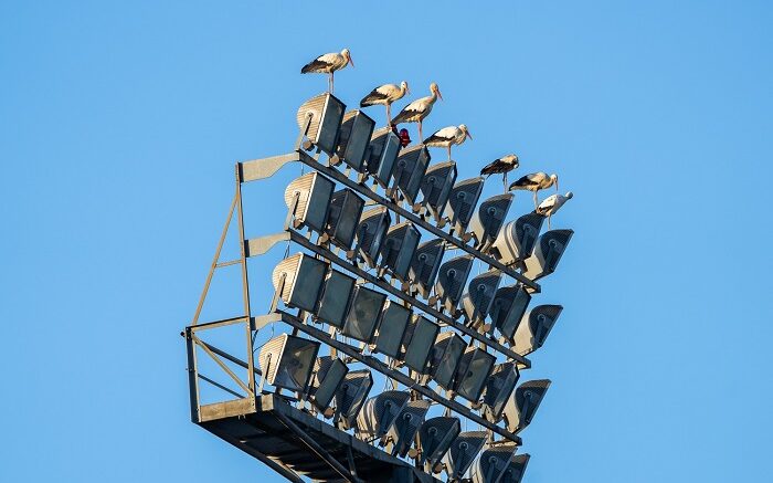 Poco fa un gruppo di una decina di cicogne bianche ha scelto un sito solo a prima vista un po’ inconsueto come dormitorio: le torri dei fari dello stadio Angelini a Chieti scalo, proprio di fronte Rete8.