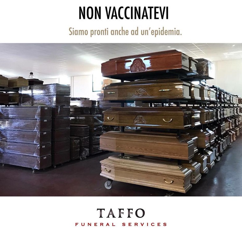 Nuova campagna shock dell’agenzia funebre aquilana Taffo: stavolta contro la scelta di non vaccinare i propri figli.