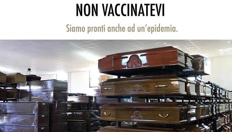 Di sicuro la comunicazione è il pezzo forte dell’attività che stavolta ha come bersaglio la scelta di non vaccinare i figli con uno slogan e una foto eloquenti e cioè, manco a dirlo, bare nuove di zecca pronte e la scritta: