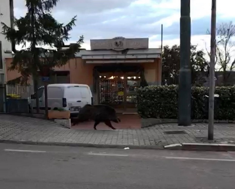 Il grosso cinghiale nella foto pubblicata sulla pagina Facebook del Comune di Chieti.