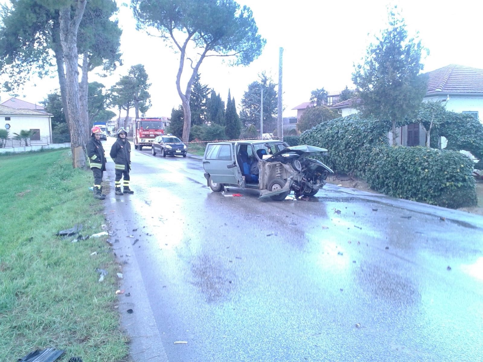Violentissimo l’impatto tra due auto, una Fita Uno da ed una Ford Focus sw, avvenuto nella tarda mattinata di oggi, intorno alle 13,00, lungo la strada provinciale 259 nelle vicinanze di Corropoli. Sul posto sono intervenuti i Vigili del Fuoco del distaccamento di Nereto, i Carabinieri di Alba Adriatica ed i sanitari del 118. Dalle poche informazioni trapelate sino ad ora, si è appreso che sulla Ford Focus viaggiavano tre persone mentre sulla Fiat Uno soltanto il guidatore. Tutti e quattro sono rimasti feriti a causa del violentissimo impatto. Non si conoscono, al momento, le loro prognosi, ma sembra che per due di loro le condizioni siano abbastanza gravi.