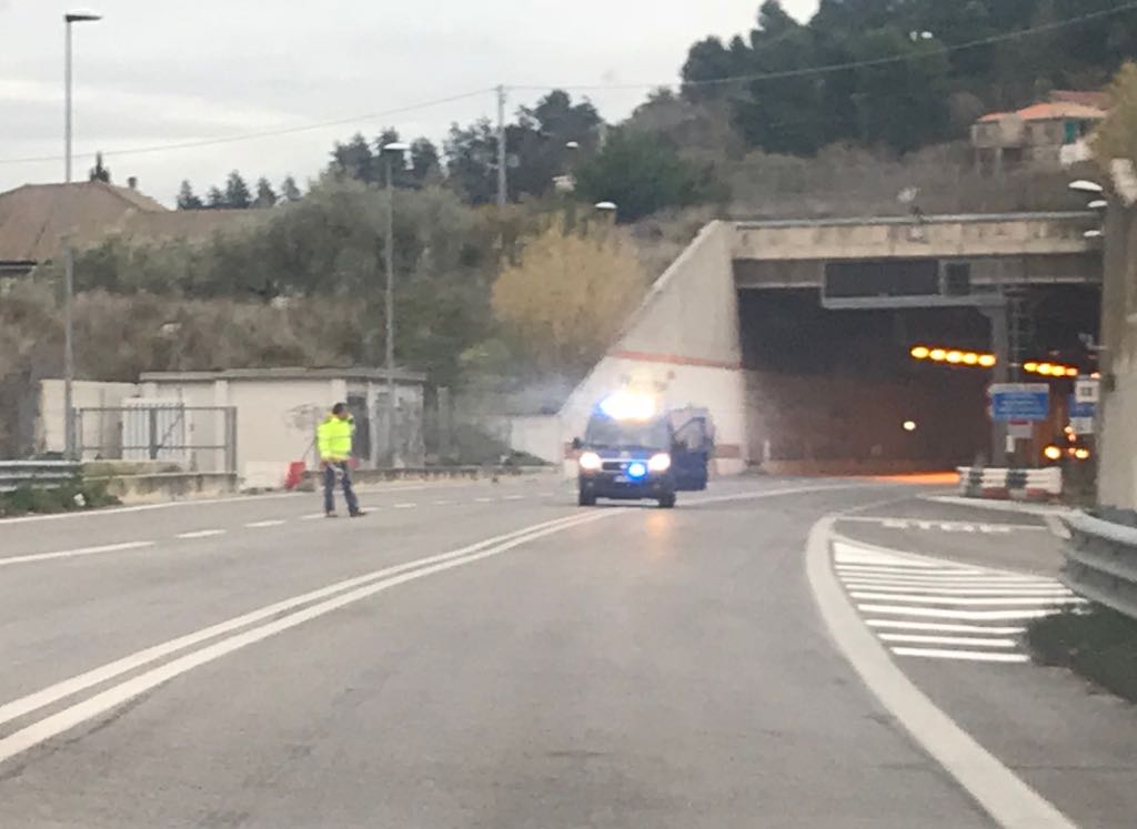 Incidente stradale all’interno della galleria San Silvestro, a doppio senso di circolazione lungo la Ss 714, variante alla Ss 16, nel tratto fra Pescara e Francavilla al Mare.