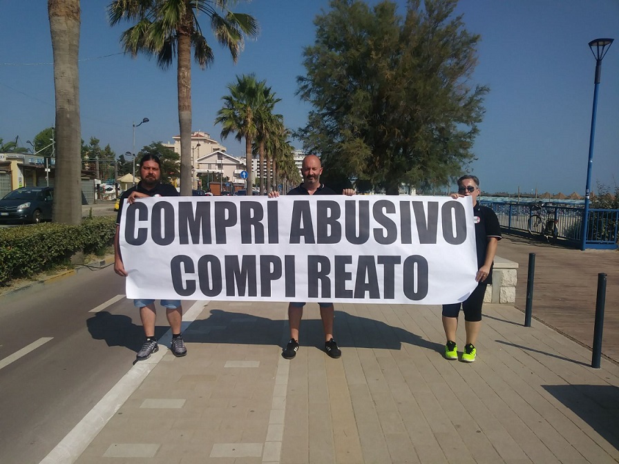 “Compri abusivi, compri reato,” i cittadini plaudono all’iniziativa contro il commercio abusivo. Attività mediatica di contrasto all’abusivismo commerciale compiuta, stamane, nel tratto di lungomare della città fra Largo Venezuela e viale Europa.
