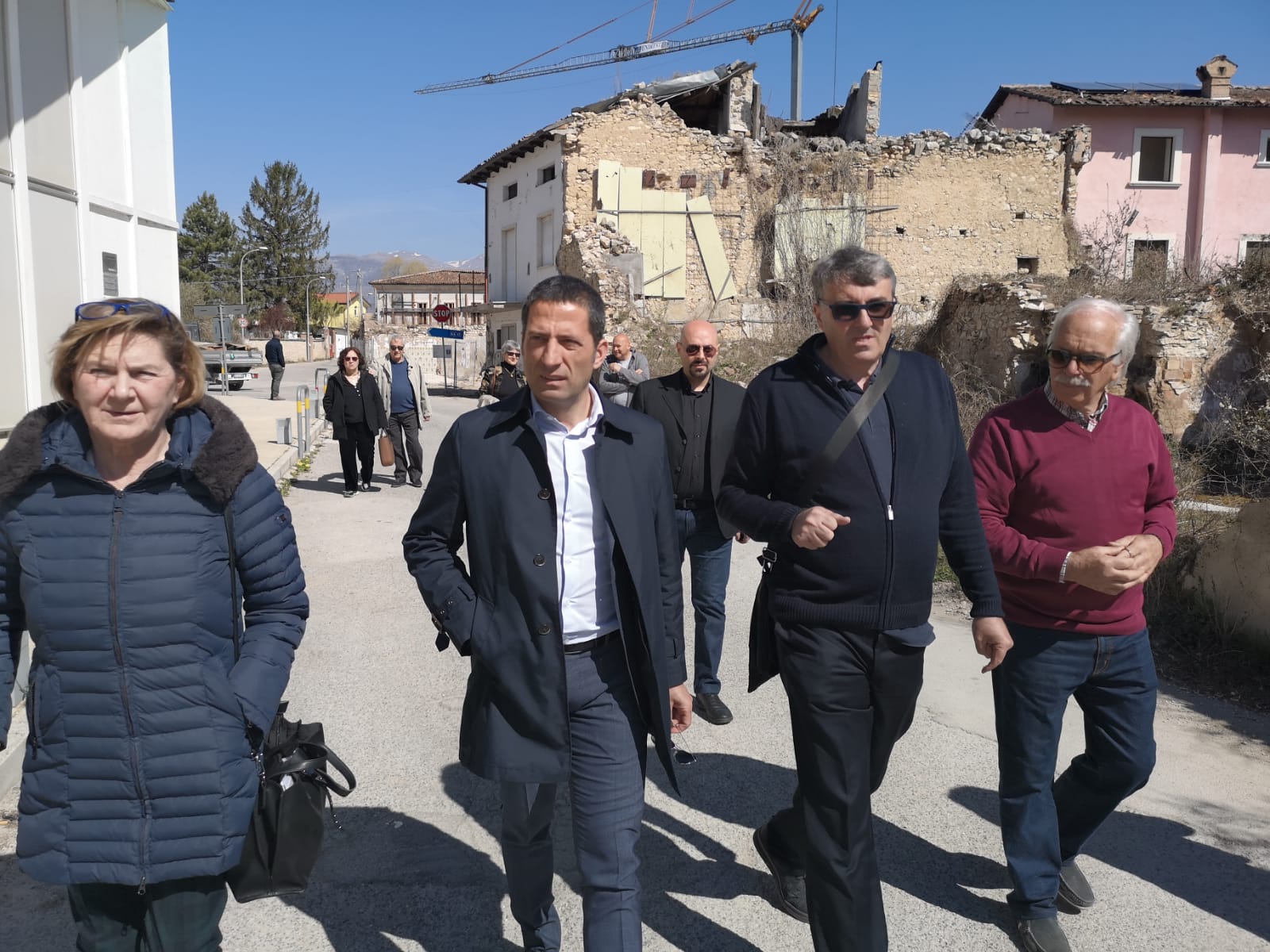 Il sottosegretario ai Beni culturali Gianluca Vacca visita la frazione simbolo del terremoto del 2009 e garantisce: “Governo al lavoro per velocizzare la fase finale della ricostruzione”.