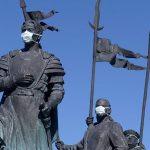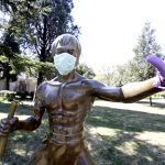 C’è anche il busto di Ennio Flaiano, a Pescara, tra le statue del mondo ritratte con la mascherina di protezione dal Coronavirus.