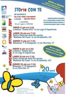 Il presidio NpL di Pescara onale di Giampaolo in via Tiburtina. La biblioteca è aperta a 35 ore alla settimana, le attività del presidio Nati per Leggere sono indirizzate in particolare ai quartieri di Villa del fuoco e San Donato, caratterizzati da un alto livello di povertà educativa e da problematiche sociali derivanti dalla scarsa fruizione dei servizi per l’infanzia e per le famiglie. I luoghi scelti per le attività sono stati la scuola, il centro parrocchiale, la ludoteca e la biblioteca. Questa nuova iniziativa prevede un calendario di incontri che riparte sabato 19 alle 11, presso la ludoteca Thomas Dhezi, in via Lago di Capestrano. Lunedì 28 alle 17 nel centro della parrocchia Madonna del Fuoco di via Stradonetto, poi giovedì 31, sempre alle 17, si torna nella biblioteca di Giampaolo. Altri appuntamenti e sono previsti anche a novembre, gli incontri sono destinati ai bambini da 0 a 6 anni, insieme a mamma e papà; lo scopo è condividere piacevoli momenti di lettura esplorando i libri e le storie.