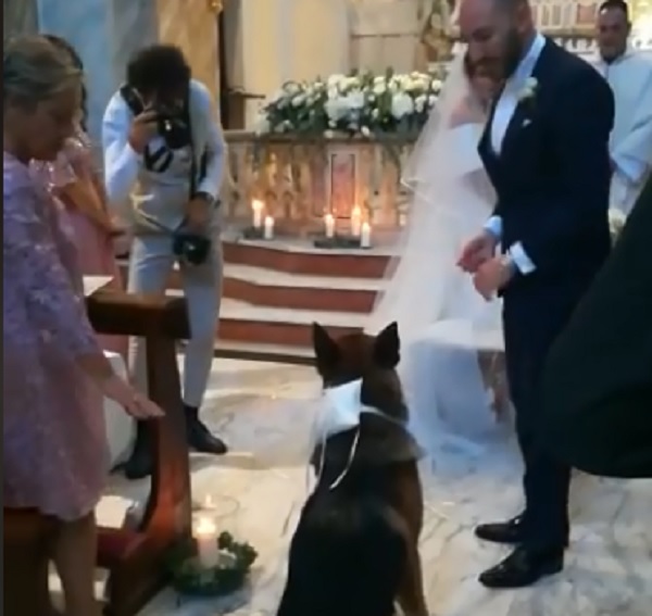 Si sono uniti in matrimonio, Sara e Luca, a Chieti, e come pubblicato sulla “community” Facebook “MO LI VID”, a portare loro le fedi, in Chiesa, un componente della famiglia molto particolare… il pastore tedesco, a tutti gli effetti membro della famiglia. Sotto gli occhi sorpresi dei presenti, il fedele amico degli sposi, percorre la navata centrale per portare loro il suggello dell’amore, rappresentato dagli anelli nuziali.