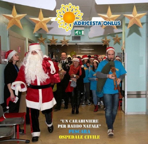 Allegria e musica nelle corsie Pediatriche dell’Ospedale Civile di Pescara, con la 15 esima edizione dell’iniziativa “Un Carabiniere per Babbo Natale” che , insieme al Comando Provinciale dei Carabinieri di Pescara, l’ADRICESTA Onlus organizza da 15 anni, con doni e sorriso ai piccoli degenti dell’Ospedale Santo Spirito di Pescara.