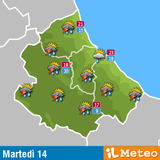 Nel Teramano: temporali e schiarite, temperature tra i 14 e i 21 gradi.