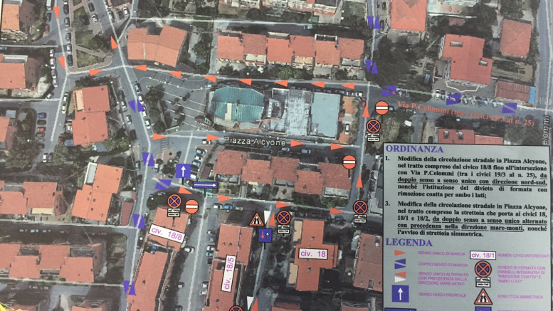 “Con l’aiuto del personale tecnico abbiamo apportato delle modifiche alla circolazione, che entreranno in vigore con l’apposizione di idonea segnaletica, che disegnano un circuito di sensi unici che dovrebbero favorire la scorrevolezza del transito ma soprattutto agevolare l’ingresso dei mezzi di soccorso. In breve le modifiche che si apporteranno saranno queste: Istituzione del senso unico di marcia direzione nord-sud nel tratto compreso tra il civico n. 18/8 fino all’intersezione con via P. Celommi (tra i civici 19/3 al n. 25). Sulla stessa via è stato disposto anche il divieto di sosta e fermata. Non solo attenzione alla circolazione dei mezzi ma anche a quelle dei pedoni. A terra verrà disposta la segnaletica per disegnare il percorso di 1 metro per i pedoni, lato abitazioni. Inoltre viene istituito il senso unico alternato nella strettoia che porta ai civici 18, 18/1 e 18/2, attualmente a doppio senso di circolazione”.