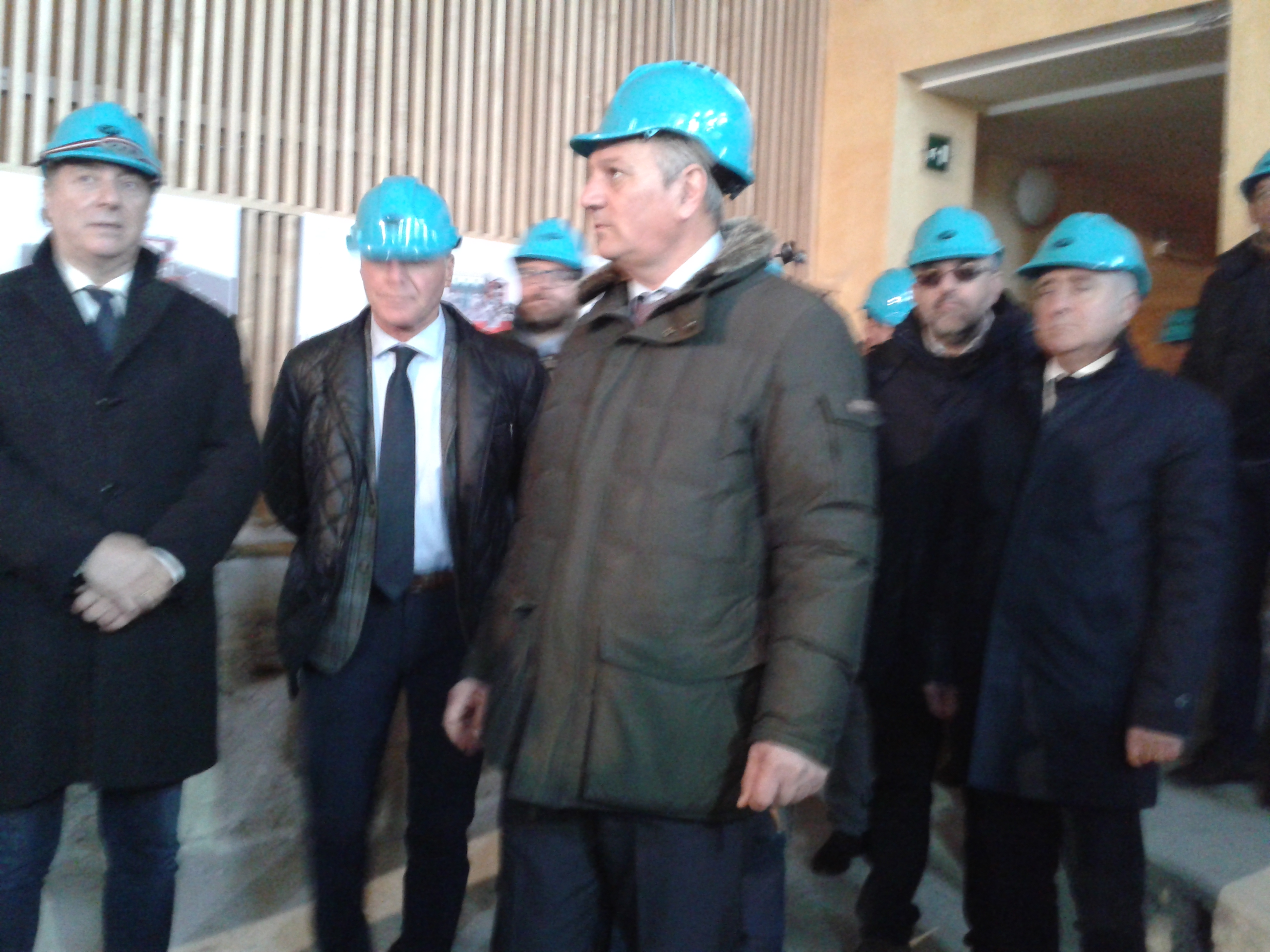 Al tour nel cantiere hanno partecipato oanche il vicepresidente vicario del consiglio regionale Lucrezio Paolini, i rappresentanti delle imprese, gli ingegneri, gli architetti, alcuni dirigenti della Regione fra cui Costanzi.